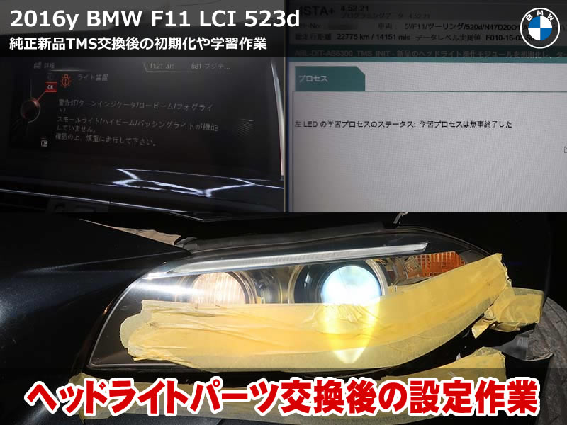 BMW 6シリーズグランクーペ(F06)にて、左ロービーム異常を伴うアダプティブLEDヘッドライト不具合の修理作業を行ないました。