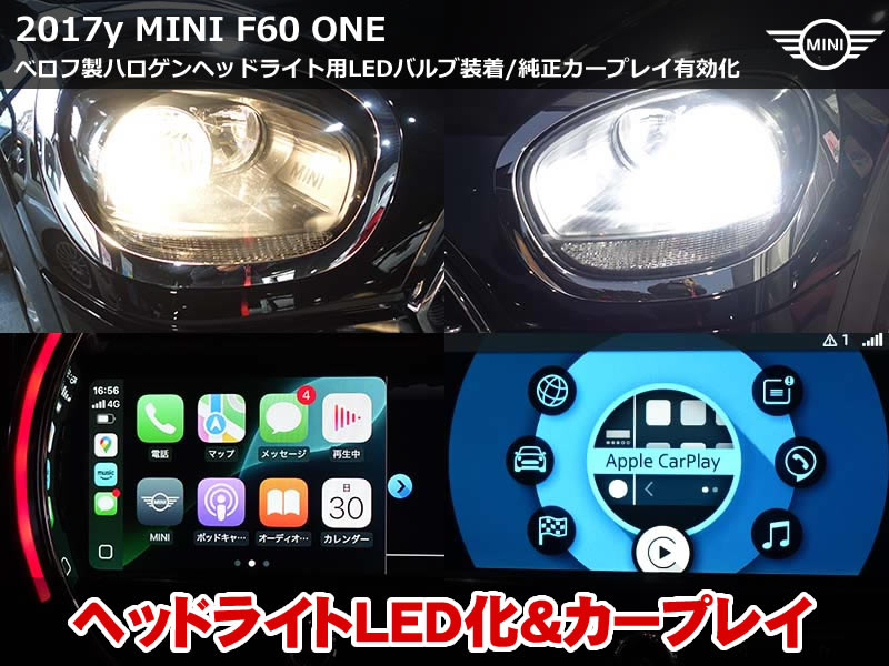 MINI F60 ONE カープレイ&ミラーリング有効化とヘッドライトLED化新着!!