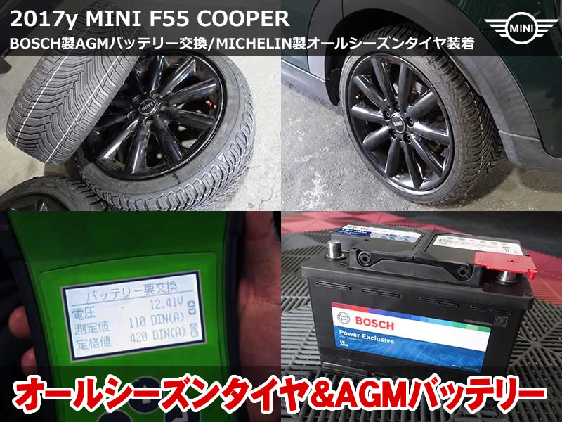 ミニ F55 AGMバッテリー交換とMICHELINオールシーズンタイヤ新着!!