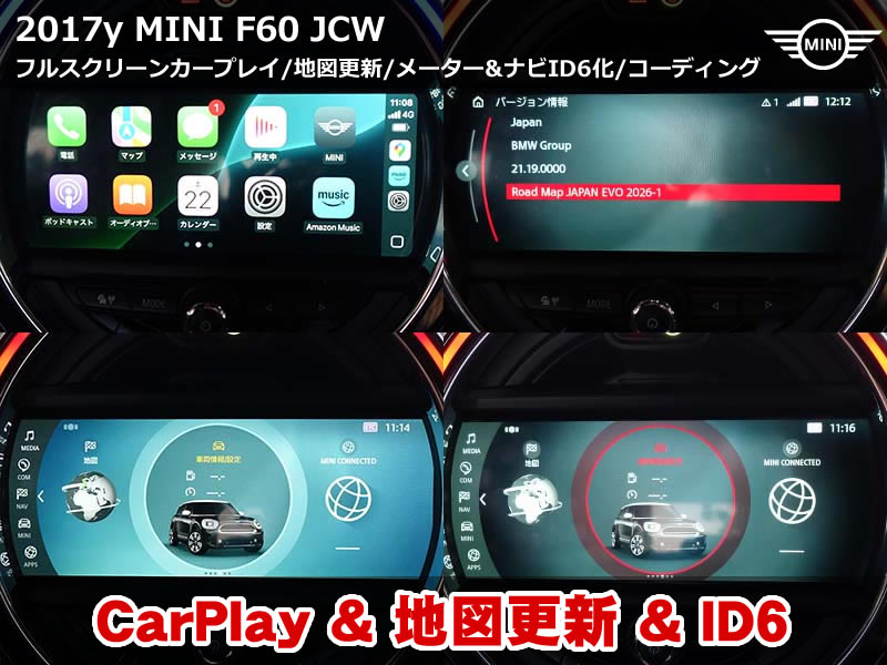 MINI F60 地図更新2026-1&CarPlayフルスクリーン化&ID6デザイン変更新着!!