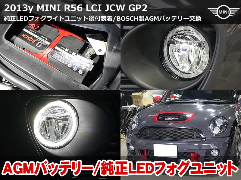MINI JCW GP2 R56 LEDフォグライトを後付装着。配線・コーディング・プログラム条件を満たし、正しいリング状デイライト発光を実現。AGMバッテリー交換も実施。 R56 JCW GP2に純正LEDフォグライト […]