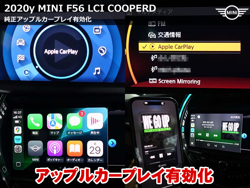 ミニ F56 クーパーD アップルカープレイ有効化とミラーリング施工新着!!