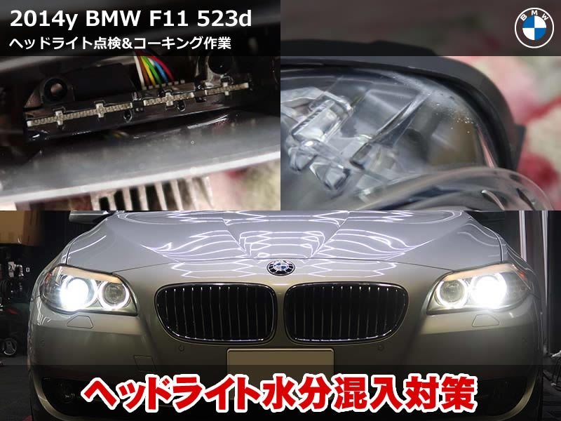 純正中古のLCI2ヘッドライトを慎重に取り付け、点灯動作を全項目確認。