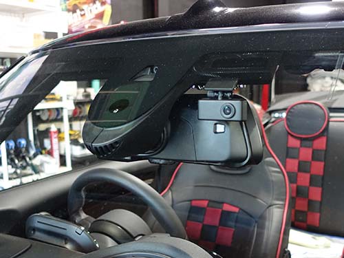 MINI F57 デジタルミラードライブレコーダーと簡易セキュリティを装着。後方視界改善と防犯性を同時に向上。AVインターフェースのパイオニアのa/tackが作る高品質アイテムで安心を手に入れることができます。